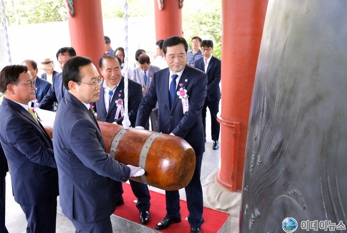 경축식에 이어 국립아시아문화전당 앞 민주의 종각에서 열린 타종식에는 이용섭 시장, 김동찬 시 의회 의장, 장휘국 교육감을 비롯해 독립유공자 후손 등 16명이 참여해 광복과 정부수립의 역사적 의미를 되새기고 소통과 화합을 통해 미래 대도약 이루고자 하는 시민 모두의 염원을 담아 민주의 종을 33번 타종했다.