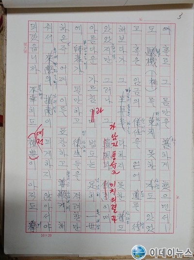 <수은집> 국역 사업 때 윤문과 교열하는 일을 맡게 되었는데, 1988년 당시 원고 일부를 보관하고 있다. 자세히 보면 3인의 필적이다. 원고는 송담 이백순선생님, 붉은 글씨는 현암 이을호관장님 필적이다. 사이 사이 작은 글씨는 김희태 윤문분. 두분 대가들 곁에서 함께 했다는 것만으로도 큰 공부길이었다.