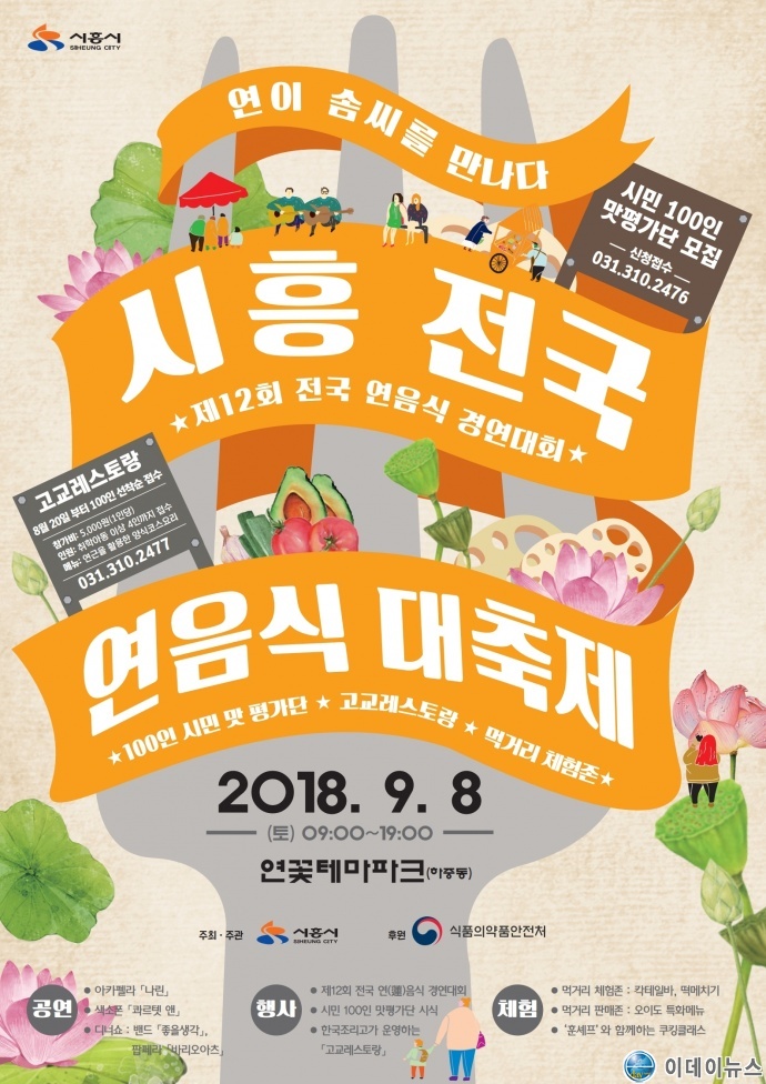 시흥시(시장 임병택) 대표 음식문화축제 <제12회 시흥 전국 연(蓮)음식 대축제>가 오는 9월 8일(토) 연꽃테마파크에서 개최된다.