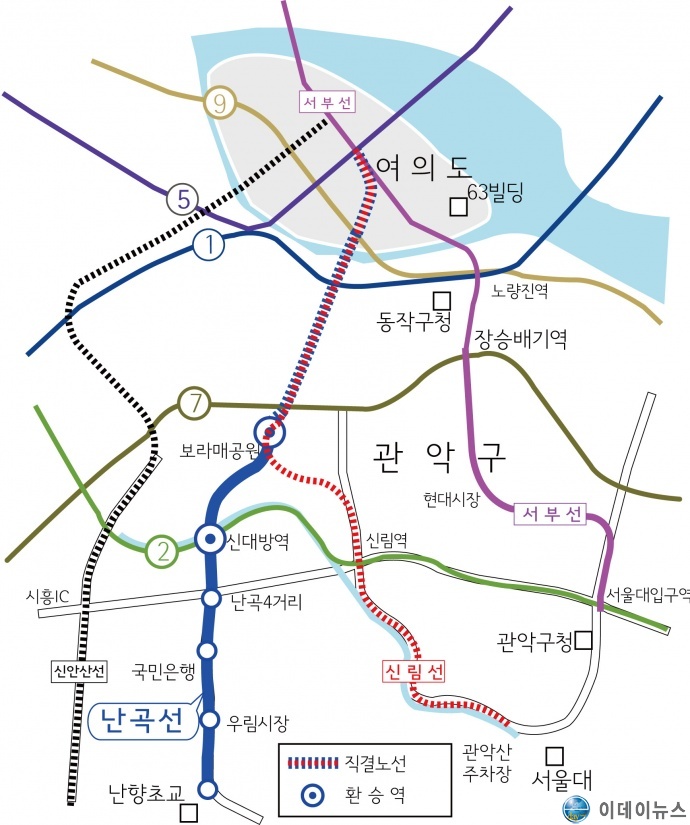 관악구는 동서방향을 잇는 지하철 2호선 단 1개 노선만 지나는 열악한 도시철도 환경으로 주민들이 대중교통 이용에 많은 불편을 겪어왔다.
