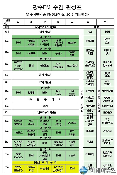 광주시민방송(FM88.9MHz)이 주민.청소년 방송활동가 154명과 함께 가을 정규방송 64개 프로그램을 편성했다.