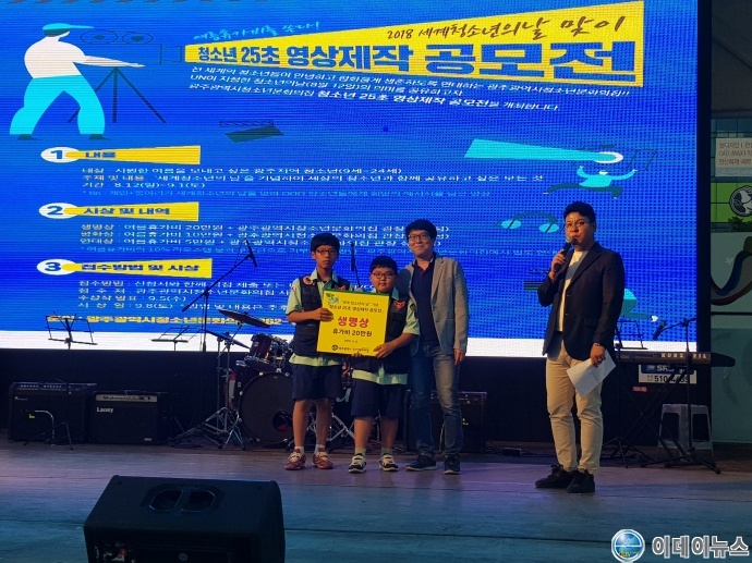 광주광역시청소년문화의집 주관 ‘세계 청소년의 날’ 기념 「청소년 25초 영상제작 공모전」입상자 시상식이 8일 광천터미널 유스퀘어 야외무대에서 열렸다.