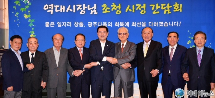 간담회에는 제2대 최인기 시장을 비롯해 제4대 김동환, 제5대 강영기, 제7대 송언종, 제8대 고재유, 제9~10대 박광태, 제6·11대 강운태, 제12대 윤장현 시장 등 8명의 역대 시장이 참석해 광주 발전을 위한 조언과 함께 다양한 의견을 나눴다.