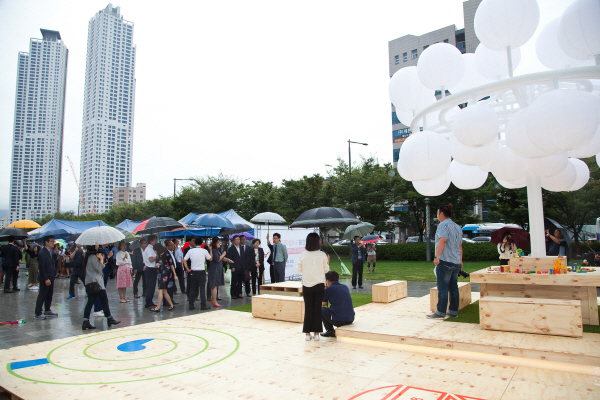 도시놀이터 프로젝트는 HUG가 도심 내 공공시설 유휴공간을 활용해 문화공간을 조성하는 도시재생 사회공헌 사업이다. 부산시, 부산건축제(옛 부산국제건축문화제)와 협업해 송상현 광장 바닥분수 옆에 놀이터를 마련했다.