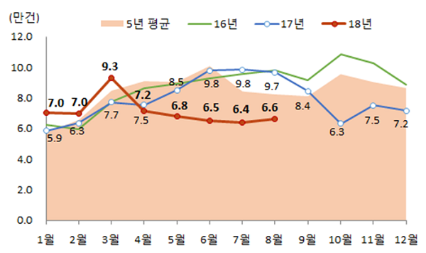 최근 국토교통부(장관 김현미ㆍ이하 국토부)는 지난 8월 전국 주택매매량이 6만5945건으로 전년 동월(9만6578건) 및 5년 평균(8만2358건)보다 각각 31.7%, 19.9% 감소했다고 밝혔다.