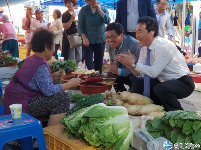 김돈곤 군수는 상인들과 일일이 인사를 나누며 “귀성객이 고향의 넉넉한 인심을 느낄 수 있도록 상인 여러분이 노력해 달라”고 당부했으며 이날 박수현 국회의장 비서실장이 청양을 깜짝 방문해 김돈곤 군수와 동행해 추석연휴 민생현장의 생생한 분위기를 살폈다.