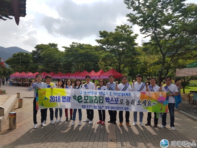 영광군(군수 김준성)이 고유의 명절 추석을 맞아 고향을 방문하는 귀성객들에게 오는 10월 11일부터 14일까지 4일간 영광 대마산업단지 일원에서개최되는 2018 영광 국제 스마트 e-모빌리티 엑스포를 알리기 위한 대대적인홍보전을 펼쳤다.