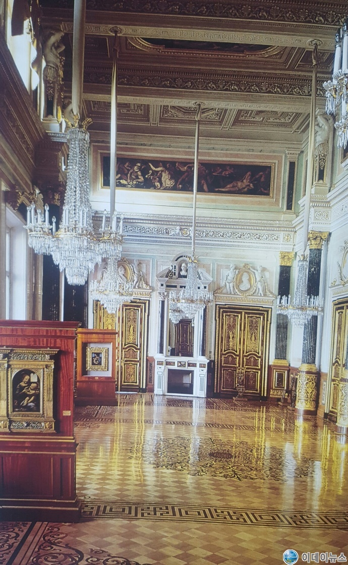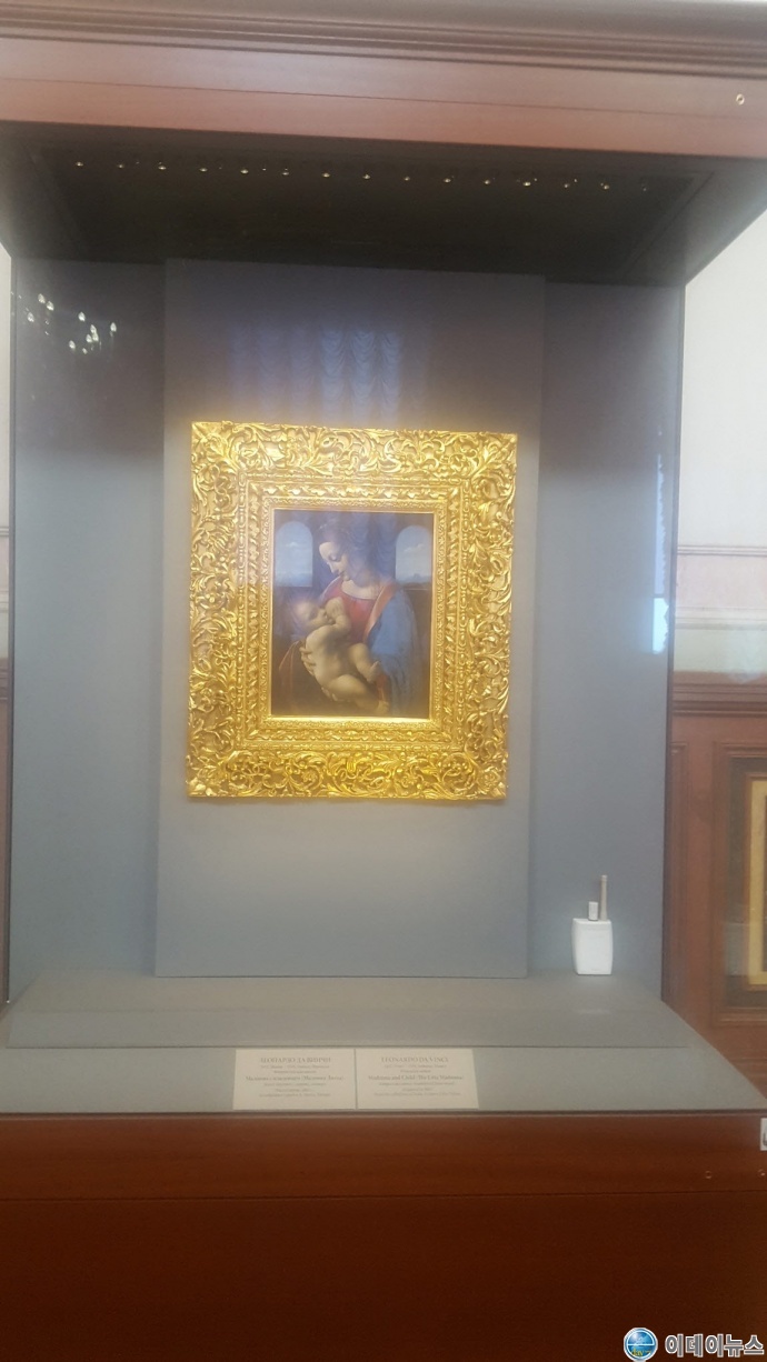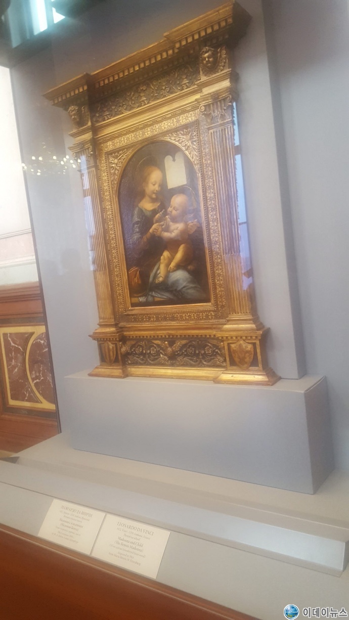 황금공작시계 홀에서 네바 강을 바라보면서 통로를 걸으니 레오나르도 다빈치 방이 나온다. 이곳엔 다빈치를 비롯한 르네상스 시대 이탈리아 그림이 전시되어 있다. 먼저 레오나르도 다빈치(1452∼1519)의 그림 ‘베노아(Benois)의 성모’와 ‘리타(Litta)의 성모’를 보았다. 그림들은 조그마하다.