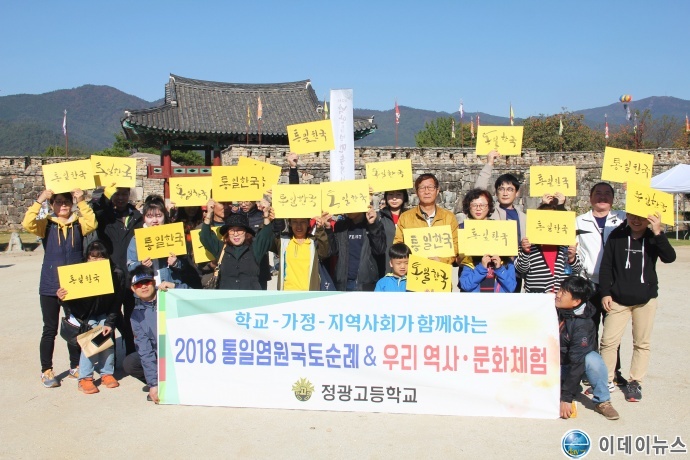 정광고등학교와 백두대간수업연구회(회장 정병수)가 지난 20일부터 1박 2일간 ‘2018 학교-가정-지역사회가 함께하는 통일염원국토순례 & 우리 역사·문화 체험활동’을 운영했다.