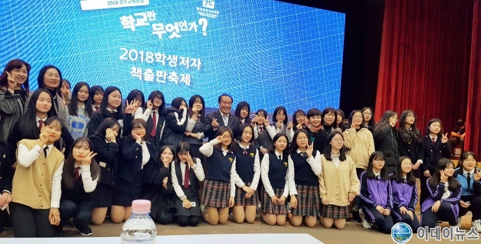 이날 진행된 ‘출판 축제’ 주요 행사는 ‘책쓰기의 여정’ 동영상 상영, 퀴즈대회, 산정초·조대여중‧정광고‧조대부고 동아리 학생들의 공연, 출판 기념사진 촬영 등이다. 저자인 첨단고 김강산 학생과 책쓰기를 직접 지도한 첨단고 조미형 교사가 공동 사회를 맡았다. 학생들과 기념사진을 찍던 장휘국 교육감은 “책을 쓰면 꿈은 단단해지고 상처는 치유된다”며 저자들에게 글쓰기를 더욱 장려했다.