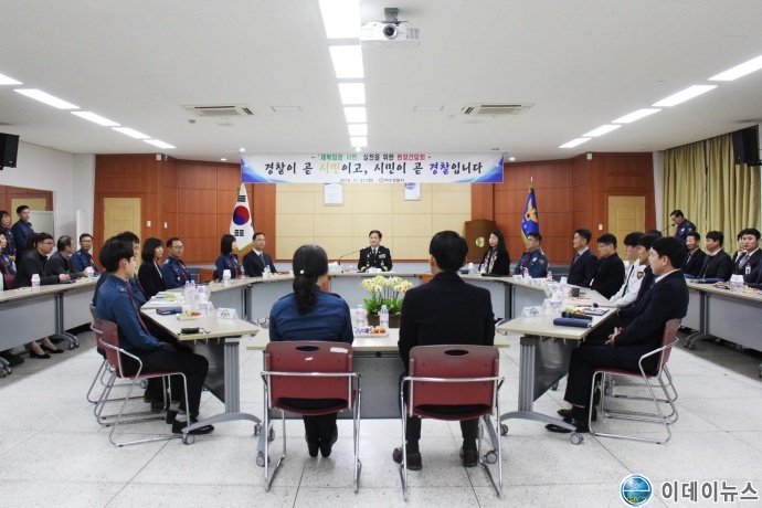 전남경찰청장(청장 최관호)은 27일 여수경찰서 3층 화합마루에서 김상철 여수경찰서장, 각 부서직원이 참석한 가운데 ‘제복 입은 시민으로서의 경찰정신 구현’이라는 주제로 치안현장 간담회를 개최하였다.