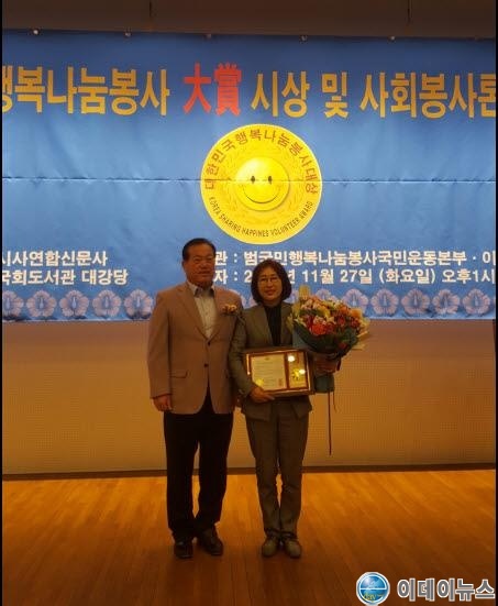 시사연합신문사가 주최하고 범국민행복나눔봉사운동본부가 주관한 ‘제5회 대한민국행복나눔봉사 대상’은 국가와 지역사회의 나눔 문화를 확산하고 사회발전과 국가와 지역사회의 행복지수 발전에 중심이 된 인물들의 공적을 기리기 위해 제정한 상이다.