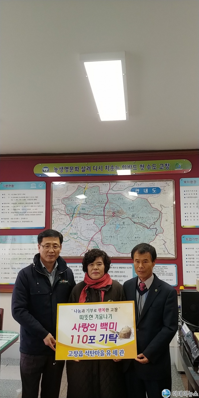 고창읍(읍장 박병도) 석탄마을 유제관씨도 가족들과 함께 고창읍행정복지센터를 방문해 백미(20kg) 110포(600만원 상당)를 전달했다. 유씨는 토마토 재배와 친환경 쌀을 생산하는 전문농업인으로 매년 소외된 이웃들에게 백미 기탁을 해오고 있다.