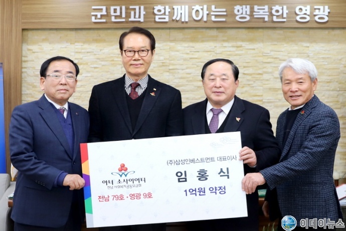 임홍식 ㈜삼성인베스트먼트 대표이사가 사회복지공동모금회를 통해 영광군에 2000만원을 기부하면서 지난 18일 영광군청에서 김준성 영광군수, 허정 전남공동모금회장 등 관계자 10여 명이 참석한 가운데 영광군의 아홉번째 아너 소사이어티 회원으로 가입하였다.