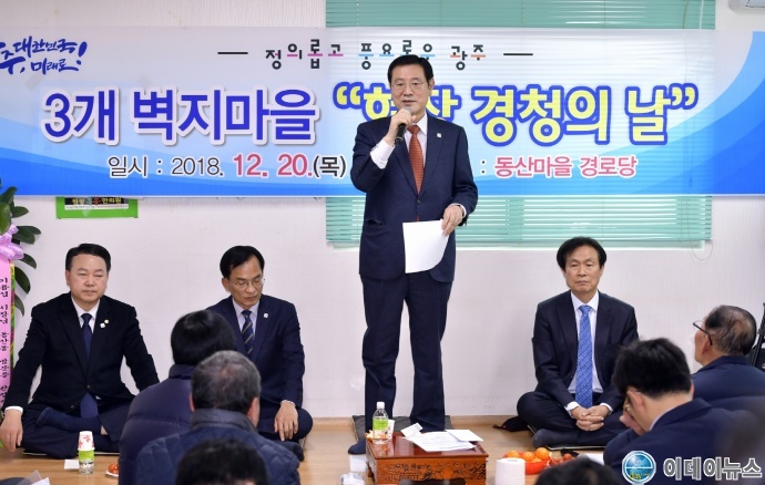 광주시는 20일 오후 광산구 평동 동산마을 경로당에서 이용섭 시장을 비롯, 광산구청, 버스운송사업조합 등 유관기관 관계자, 3개 벽지마을 주민 등 70여명이 참석한 가운데 ‘제2회 현장경청의 날’을 가졌다.