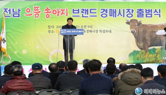 강진군이 지난 19일 강진완도축협 가축경매시장에서 ‘전남 으뜸송아지 브랜드 경매시장 출범식’ 가졌으며 출범식에는 관내 한우농가와 이승옥 강진군수, 전종화 전남도 농축산식품국장, 전남도 한우단체기관장 등 350여 명이 참석한 가운데 출범 기념식을 갖고 송아지브랜드 첫 경매시장 개장을 참관하였다.
