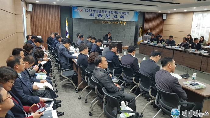 영광군은 지난 15일 군청 소회의실에서 김준성 군수, 장기소 부의장을 비롯한 군의원, 강영구 부군수, 실과소장, 읍․면장 그리고 자문위원 등 50여 명이 참석한 가운데「2025 영광군 발전 종합계획 수립용역」최종보고회를 개최하였다.