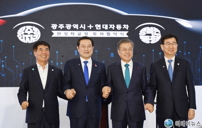 광주광역시와 현대자동차는 사회적 대타협을 기반으로 한 노·사 상생의 사회통합형 일자리인 광주형 일자리 첫 모델로 완성차 합작법인 설립사업 추진에 전격 합의하고, 31일 광주시청에서 투자협약을 체결했다.