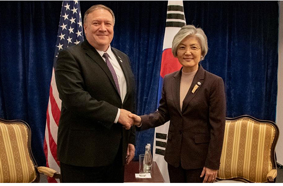 미국과 폴란드가 공동 주최하는 중동 평화와 안보 증진을 위한 장관급 회의에 참석하기 위해 폴란드를 방문 중인 강경화 외교부 장관과 마이크 폼페이오 미 국무장관은 이날 한미 양자회담을 가졌다.