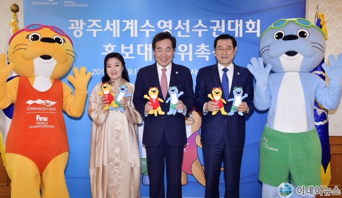 이낙연 국무총리와 국악인 오정해 씨가 2019광주세계수영선수권대회 홍보대사로 활동한다.