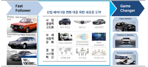한 증권 관계자는 "현대차는 지난 27일 CEO 인베스터 데이를 통해 중장기 재무 목표와 연구개발(R&D)ㆍ투자 계획, 기술 로드맵을 공유했다"며 "사업 경쟁력 고도화, 미래 대응력 강화, 경영조직 혁신과 수익성 개선, 주주 환원 강화, 유동성 등 재무구조 가이던스가 주요 내용"이라고 분석했다.