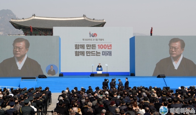 문재인 대통령은 오늘(1일) 서울 광화문광장에서 독립유공자·유공자 후손·삼부요인과·시민 1만 5천 여명이 광장을 메운 가운 데 오전 10시 반부터 12시 반까지 약 2시간 동안 열린 ‘제100주년 3.1절 기념식’에 참석했다.