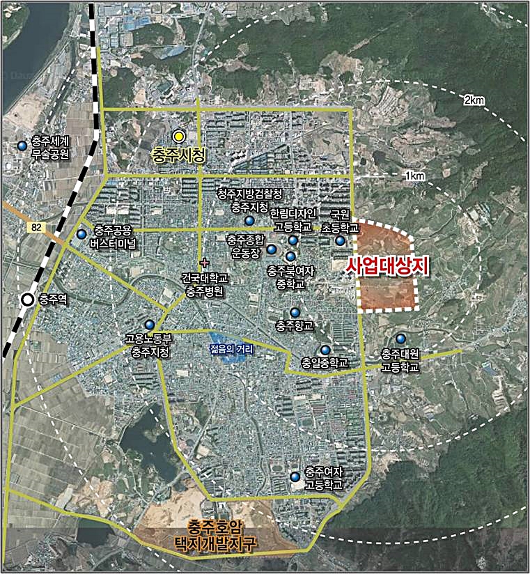 앞서 LH는 2017년 9월 이곳 도시개발구역 지정을 제안했으며, 충주시는 이를 수용 결정하고 이듬해 충북에 구역 지정을 요청했다.