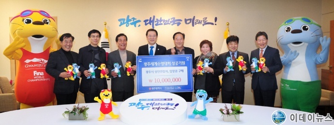 광주광역시와 2019광주세계수영선수권대회 조직위원회는 6일 오후 시청 3층 접견실에서 광주시 상인연합회에 ‘광주수영대회 입장권 구매 약정서’를 전달했다.