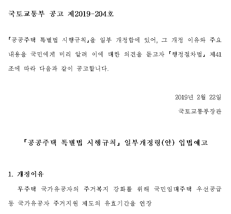 국토부, 「공공주택 특별법 시행규칙」 일부 개정안 입법예고