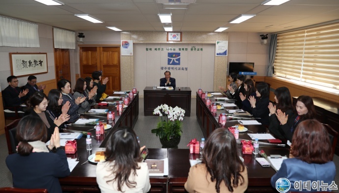 광주광역시교육청(교육감 장휘국)이 8일 세계 여성의 날을 맞이해 장휘국 교육감이 여성 직원들을 격려하는 뜻깊은 시간을 가졌다고 밝혔다.
