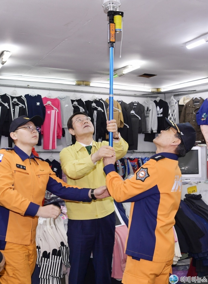 현장영상 보고회 후 이 시장은 전기·가스 안전공사 전문가, 시민관찰단, 소방서와 함께 직접 말바우시장 안전점검에 참여해 화재감지기 동작시험, 전기설비 열화상 카메라 측정, 레이저 가스 누출감지기 동작을 시연하며 전통시장 화재예방을 위한 안전관리대책 수립을 담당부서에 지시했다