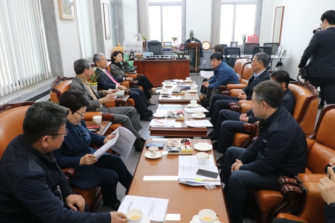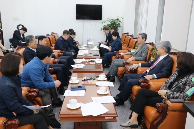 △ 한국노총은 18일 국회 환노위 위원장실에서 열린 환노위 위원들과의 간담회에서 근로기준법 등 주요 입법현안에 대한 입장을 전달했다.