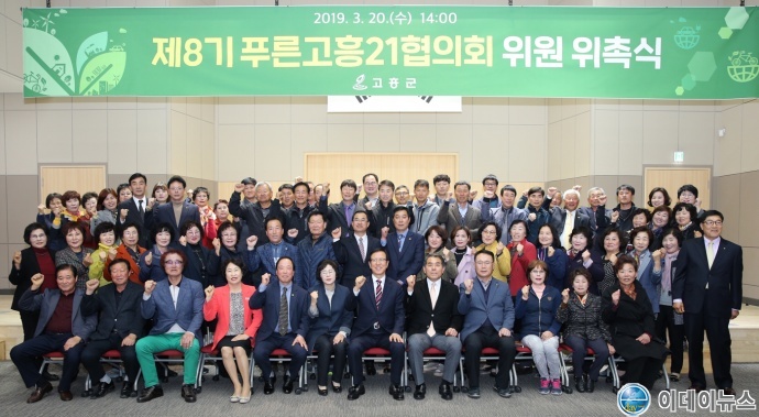 고흥군(군수 송귀근)은 지난 20일 군청 우주홀에서 미세먼지 없는 푸른고흥 가꾸기에 함께 동참해 주실 제8기 ‘푸른고흥21협의회’ 위원 88명에게 위촉장을 수여하였다.