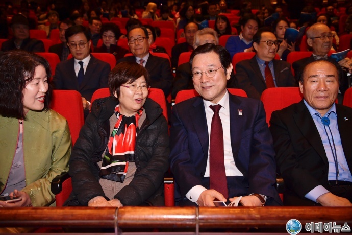 광주시립오페라단이 지난 29일 정율성 오페라 ‘망부운’을 57년만에 무대에 올린 가운데, 이용섭 광주광역시장이 정율성 선생의 딸인 정소제 여사를 만나 감사의 뜻을 전했다.