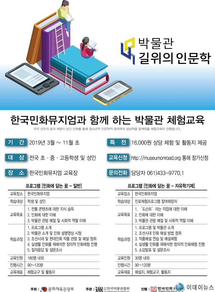 「박물관 길 위의 인문학 」접수는 4월부터 가능하며 자세한 문의는 한국민화뮤지엄 홈페이지(http://minhwamuseum.com) 또는 유선(061-433-9770)으로 하면 된다.