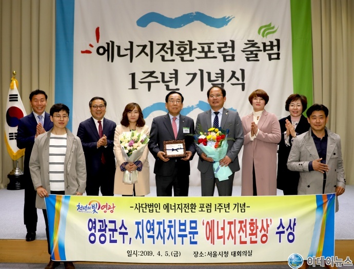 영광군(군수 김준성)은5일 서울시청에서 사단법인 에너지전환포럼이주최한 출범 1주년 기념행사에서 지역자치부문 ‘에너지전환상’을 수상했다.