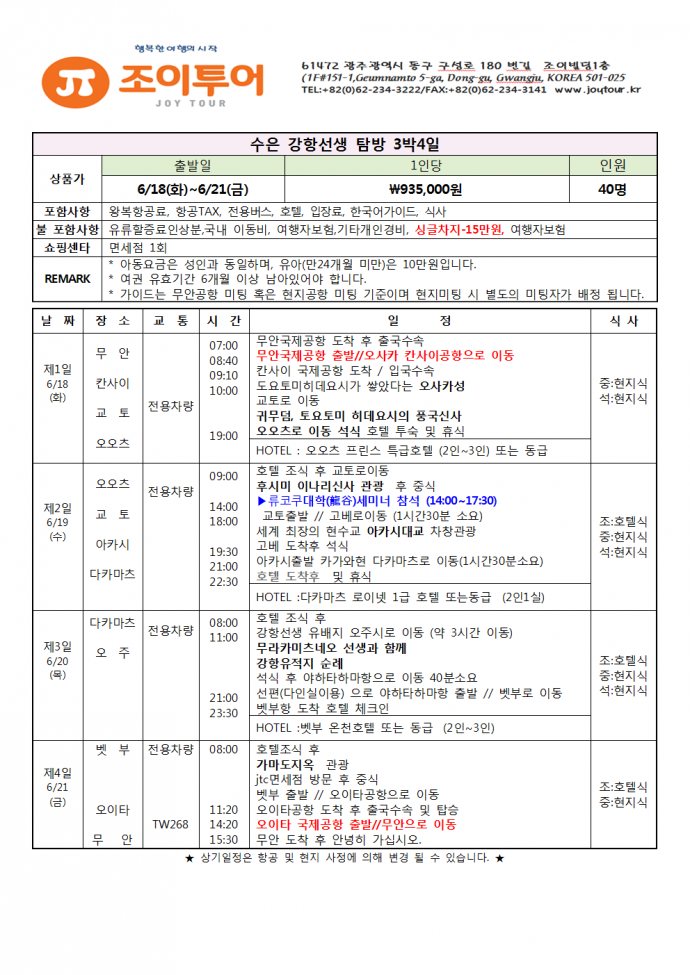 무안공항에서 6월 18일 출발해 일본 오사카 칸사이공항으로 들어가, 1박후 19일 오후 2시에 교토 료코쿠(용곡)대학 회의실에서 국제학술세미나를 개최한다는 것.