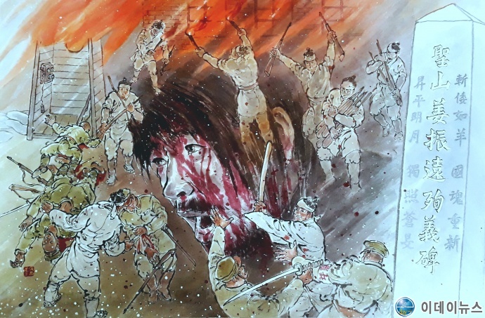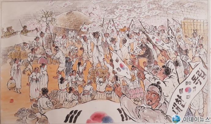 [매천 김만옥 한국화가, 순천 항일 항쟁 낙안 하송리 주민 만세운동 전시작품]