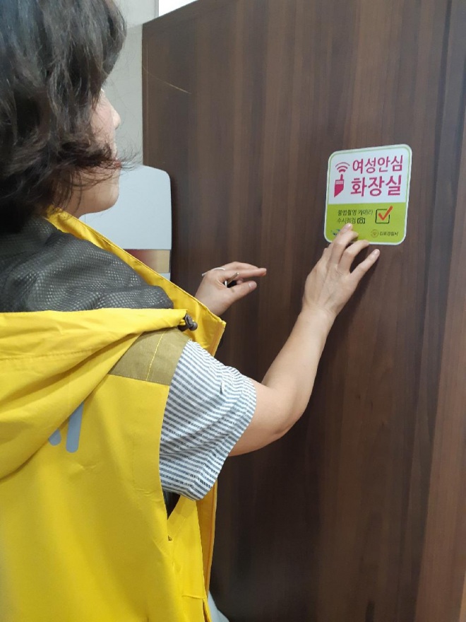아울러 범죄발생 예방과 시민들이 안심하고 화장실을 이용할 수 있도록 점검을 완료한 화장실 입구에 ‘여성안심스티커‘를 부착했다.