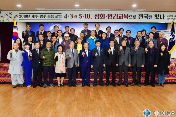 제주특별자치도교육청 대회의실에서 개최된 포럼에는 이석문 제주교육감과 장휘국 광주교육감, 시‧도교육청 관계자, 제주 4·3평화재단과 5·18기념재단을 비롯한 시민사회단체 관계자 등 70여 명이 참석했다.