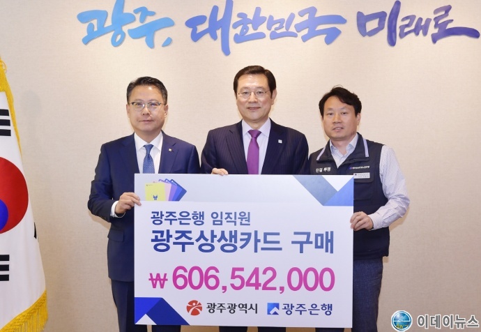 이를 통해 광주은행은 임직원 복지포인트 5억원 및 개별구매 1억원 등 총 6억원 상당을 구매했다. 이용섭 시장은 “광주상생카드를 구매해 주신 것에 대해 감사드린다”며 “앞으로도 광주상생카드 활성화에 적극 협조해달라”고 말했다.
