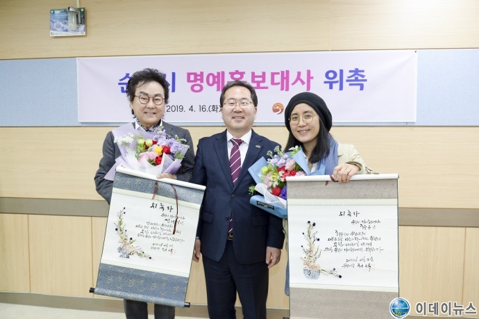 순천시는 지난 16일 김정택 예술단 단장과 황윤 영화감독을 순천시 명예홍보대사로 위촉했다. 시에 따르면 두 사람은 순천에 대한 특별한 추억으로 애정이 깊어 명예홍보대사로 위촉했다.
