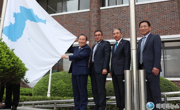 광주시교육청이 역사적인 ‘4·27 판문점 선언’ 1주년을 맞아 교육단체들과 함께 ‘평화통일교육주간’을 운영한다. 특히 23일 시교육청 본청에서는 나라와 민족의 '평화·통일·번영'의 염원을 담아 한반도기 게양행사를 진행했다.