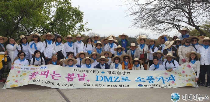 광주서구(서대석 구청장)가 지난 27일 파주시 임진각 일대에서 남북 화해와 평화의 염원을 담은 DMZ평화인간띠운동에 참여했다.