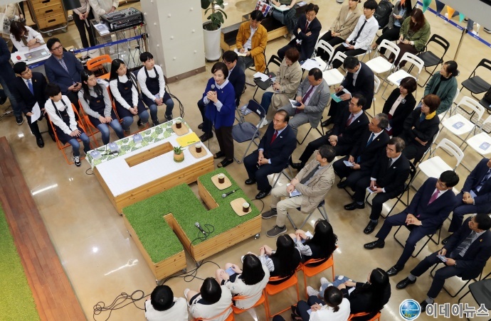 28일 광주시교육청에 따르면 유은혜 부총리가 이날 광주청소년삶디자인센터에서 열린 ‘공간혁신프로젝트 참여학생 간담회’에 참석했다.