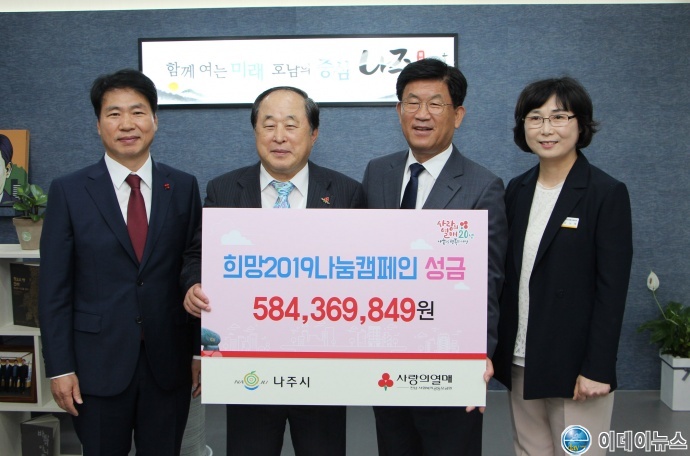 전남 나주시(시장 강인규)는 전남사회복지공동모금회로부터 ‘희망2019 나눔 캠페인’ 우수기관에 선정, 지난 2일 감사패를 전달받았다.
