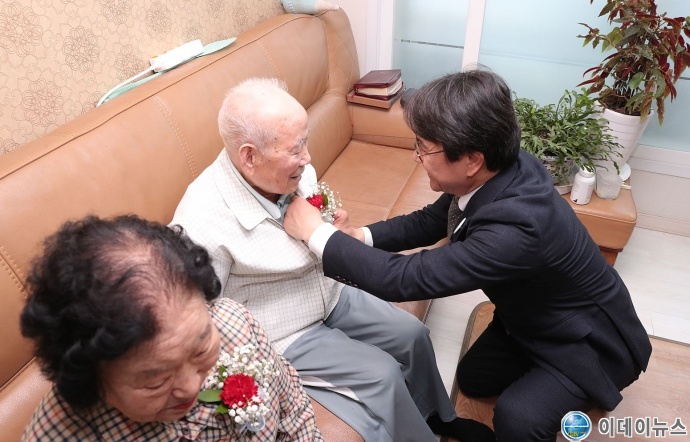 카네이션을 전달 받은 어르신은 “이렇게 구청장이 관심을 갖고 찾아와 카네이션까지 달아주니 너무나 고맙다”고 말했다.
