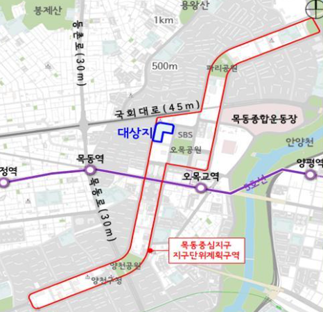 해당 필지는 2017년 `목동중심지구 지구단위계획 재정비`시 정보산업 고도화로 인한 기능 축소에 따라 발생하는 공실 등을 활용하고 상업ㆍ업무 중심기능 보완을 위해 지정용도가 해제됐다.