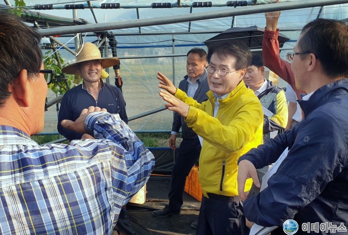 한편 이승옥 군수는 지난 16일, 성전면과 도암면 샤인머스켓 포도 시설재배 3농가를 찾아 농가들과 함께하는 시간을 가졌다.