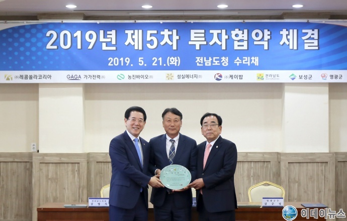 영광군(군수 김준성)은 지난 5월 21일 전남도청 수리채에서 ㈜레콤쏠라코리아 등 3개사와 투자협약을 체결했다.